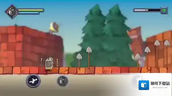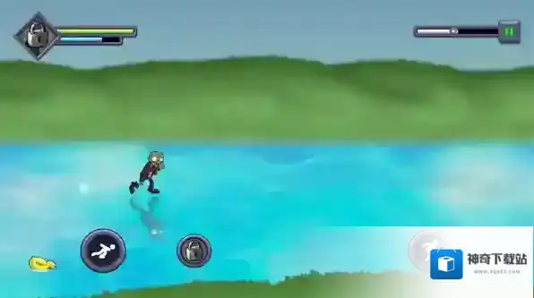 3、进入关卡后僵尸会自动前进,在屏幕左右的上下分别是跳跃和切换方向,有时向下的按键会变成冲刺。