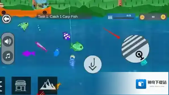 3、成功钓到鱼后,根据鱼种和自身需求选择是出售换金币还是放生,获得的金币可前往商店购买高级装备和道具。