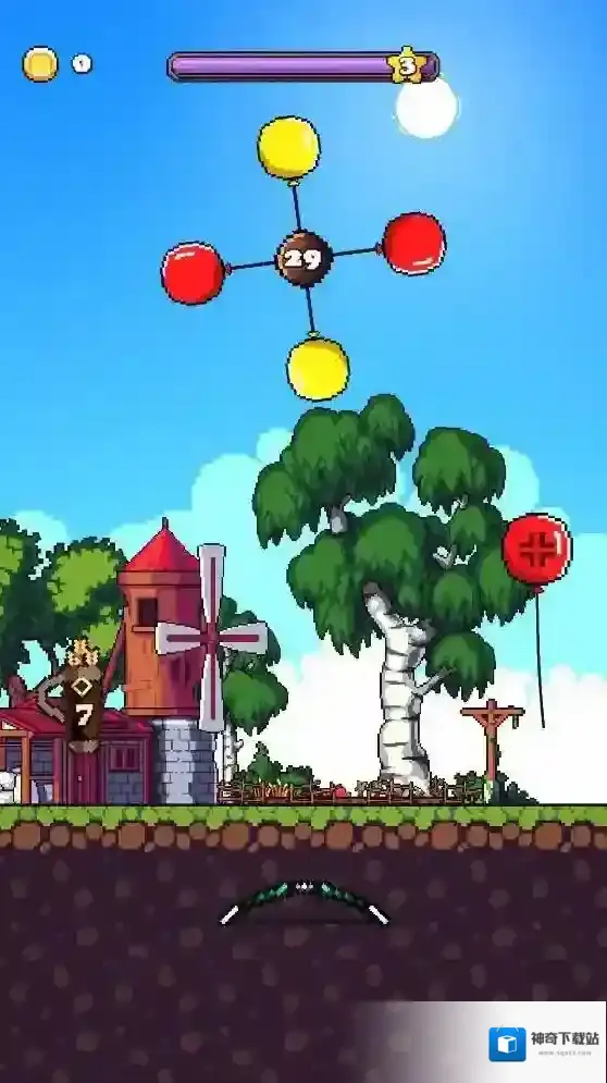 3、关卡里的气球会按照不同的方式进行转动,把握好时机发射弓箭来击破气球,击破气球可以增加闯关时间。