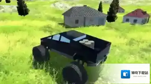 2、控卡车(方向盘、踏板),在草地行驶,避障碍,找“箭头”指引的目标点。