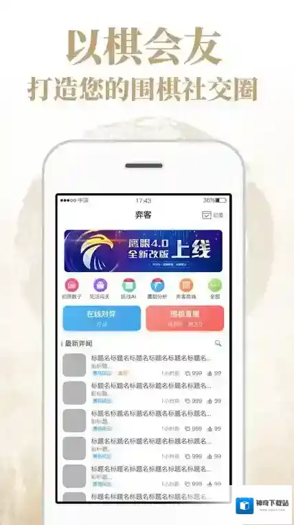 弈客围棋app官网版基于围棋社交理念的新概念软件,刚对围棋感兴趣的朋友也可以通过电脑AI和正版视频教程轻松入门,快来加入吧。