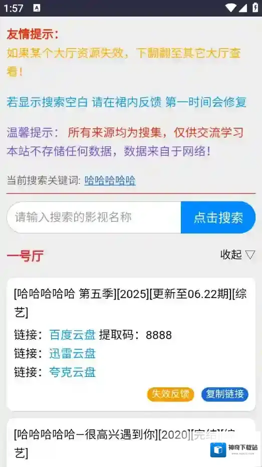 3、用户直接在网站上搜索关键词,即可快速显示各个网盘的影视资源下载链接和提取码,操作方便快捷。</p