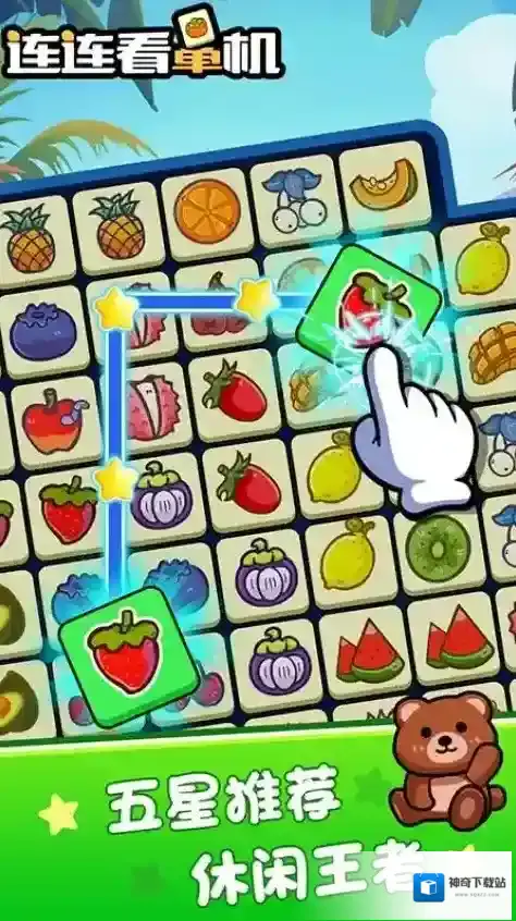 连连看单机是一款经典的水果消除游戏,玩家需要在充满各种水果图案的屏幕上找到两个相同的水果并将它们连起来进行消除,游戏不仅考验玩家的观察力和策略思考能力,还充满了新鲜感,因为每次重玩图案都会有所不同,游戏画面色彩鲜艳,音效悦耳,简单易上手,适合各种年龄段的玩家,尤其在等待时打发时间。