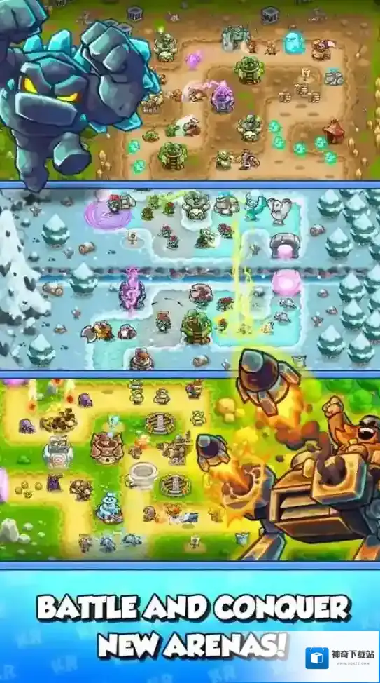 激斗王国保卫战,原名Kingdom Rush Battles,是王国保卫战系列的新作,这一次将不再是一个人了,在激斗王国保卫战里你将和另外一位玩家对战,你们将面对相同的敌人,如果有玩家漏掉怪物就会损失一颗心,当三颗心全部损失后就会被击败。游戏中诸多熟悉的英雄可以选择,还有很多防御塔可以让你去搭配,布置各种防御来击退敌人,击败所有敌人来守护自己的王国。