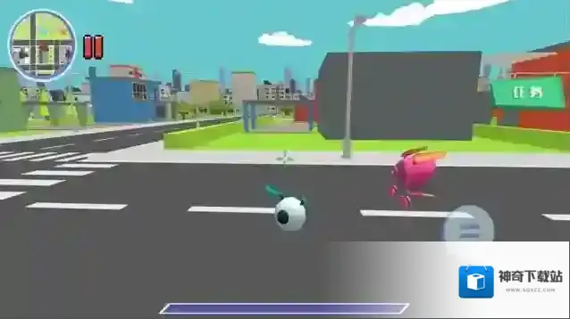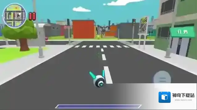 2、进入城市街道,操控箭头标记的机器人,移动探索,触发与粉色机器人的互动任务。
