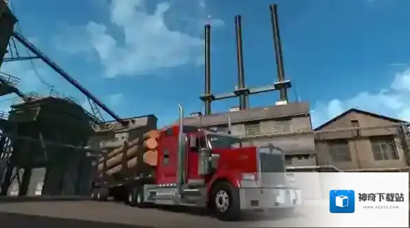 3、抵达工厂,沿路线精准停车,完成木材交付,借工厂场景熟悉卡车装卸、运输全流程。