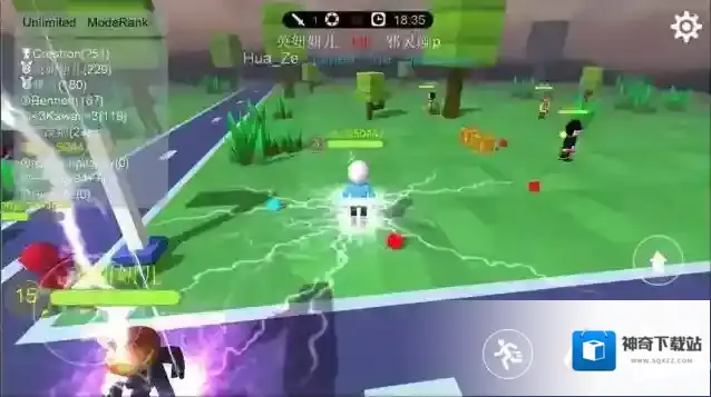 1、独特的方块卡通美术风格,将吃鸡玩法与Q版建模融合,采用明亮色彩的三维立体场景,打造出别具一格的战场视觉效果。
