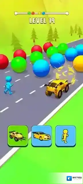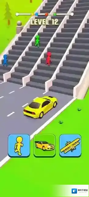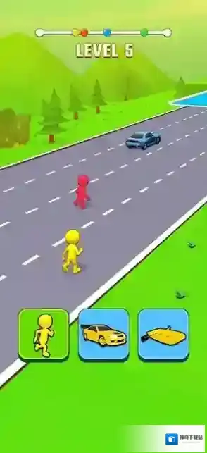 2、Level1中,按箭头选人物形态(黄色小人),控制角色在道路奔跑,避开障碍,追赶对手。