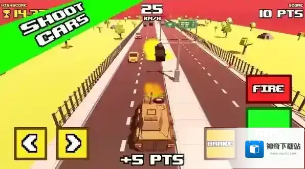 1、坦克操控方式:点击左右键控制坦克转向,点击刹车键减速,简单的触屏操作让玩家快速上手,在城市街道中灵活驾驶坦克,精准撞击目标车辆,完成破坏任务。