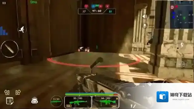 5、玩家可以利用虚拟键盘控制角色移动,右下方的按键可以进行射击、换弹、半蹲、趴下等多种功能;