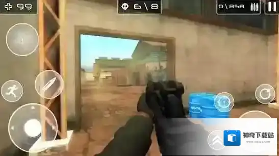 3、战斗中,用左侧摇杆移动,瞄准箭头指向敌人,点击射击按钮,消灭目标,推进关卡。