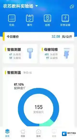 猪小智app,特为饲养员打造的喂养掌上管控软件,让养猪场的一切都可以可视化。养猪场的员工可以查看每天要操作的任务,此外,养猪场的经营还包括免疫、防控等,当设备需要巡查和夜间巡查时,可以及时记录和检查。