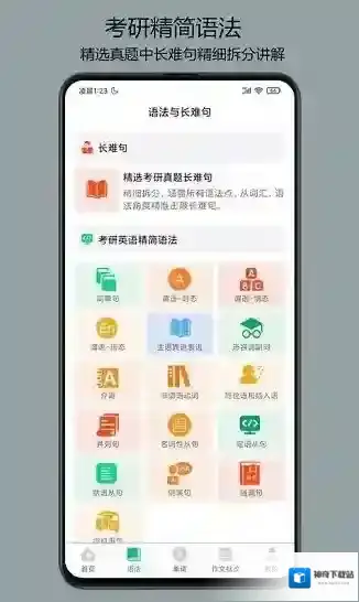 4、丰富的语法专享划分,语法学习中心拥有简单句、谓语、主语宾语表语以及形容词副词等多种版块;