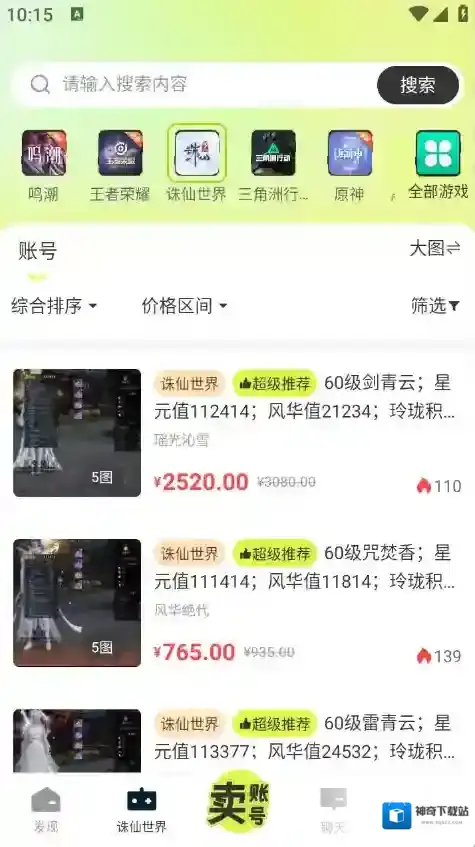 2、在软件中就可以筛选预览更多游戏账号,获取需要的游戏账号交易信息。