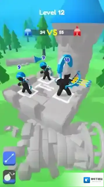 融合弓箭手(Merge Archers),一款以弓箭战为主元素的冒险闯关类手游。准备好你的弓箭,为自己的王国而战!在游戏中,我们控制一众火柴人去保卫自己的王国,消灭一个又一个的敌人,并占领他们的城堡!我们可以消耗金币来召唤更多的弓箭手,然后合并他们,成为更加强大的弓箭手,帮助你更快更准的消灭敌人!随着游戏的进行,你还会解锁类似大炮等更多的武器,让战斗更加的精彩!