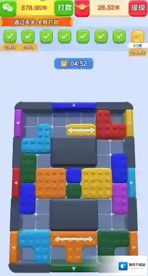 快点挪出来,一款益智休闲的趣味闯关游戏,整体的玩法类似于华容道。在游戏中,我们需要通过移动方块来将它们全部移除场景,根据对应颜色的出口来移出对应的方块,以此类推,成功移出所有方块后即可过关获得奖励。游戏的玩法还是比较新颖的,并且挑战起来也很有意思,虽然上手有一点点难度,但是熟悉起来后会感觉非常的好玩!