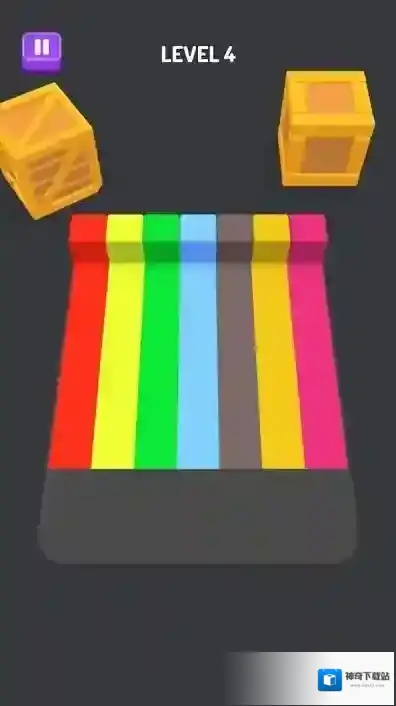 2、关卡玩法进入LEVEL4、5等关卡,需折叠彩色长条、方块,按箭头指引移动拼接,组合成目标形状,考验空间思维。
