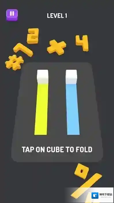 3、核心机制通过折叠操作,让分散方块长条契合,完成关卡,利用界面指引,调整方块位置达成目标。