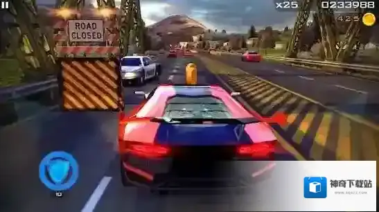 2、比赛中途,凭借直观操控在车流中灵活穿梭,利用超真实物理引擎完成漂移、甩尾等帅气动作,同时收集金币为后续升级做准备。