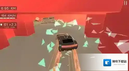 3、驾驶红色赛车,关注左上角速度(143千米/小时)、距离(0.35千米),沿线条赛道漂移,积累分数。