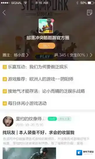 5、用户能够在嗨圈随意的公布自身的念头,结识志趣相投的玩家互相强烈推荐更好玩儿的游戏。