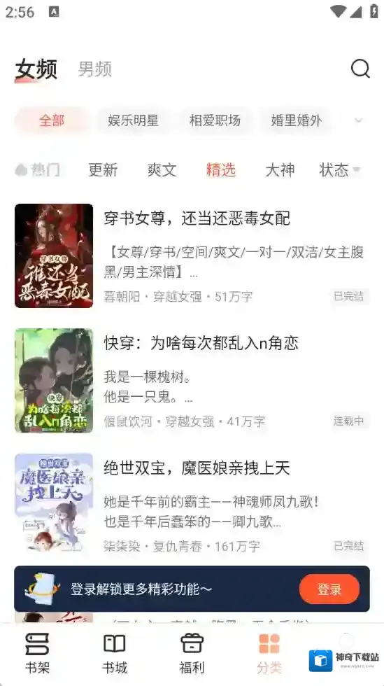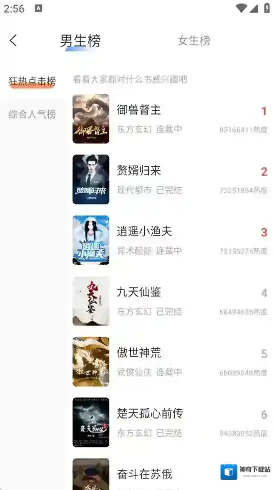 2、小说种类繁多,有男生小说,女生小说,流行榜等流行类型,应有尽有随意选择。