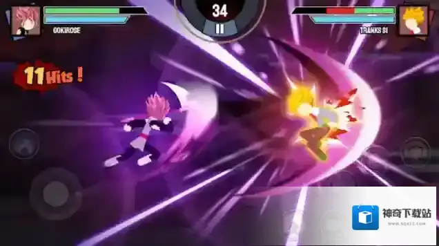 超级龙影格斗(Stickman Warriors),以热血格斗动漫《龙珠》为题材的火柴人动作格斗类手游。游戏通过简易的手绘风格,将动漫中的各种人物以火柴人形象活灵活现的展现出来,虽然人物的画风较为简单,但是打都起来的特效和震撼感可以一点都不含糊,各种技能效果也很高的致敬龙珠,让你能够体验到刺激无比的格斗乐趣!不仅如此,我们还可以在对战中体验到变身的快乐,只需蓄满气就能变身,例如变身超级赛亚人,开启自在极意功等等,体验起来非常的有意思!
