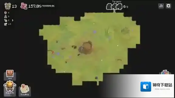 4、正式开始后左上角现实的是你的蚂蚁人口和食物,点击右下角的树桩可以进入你的蚁穴。
