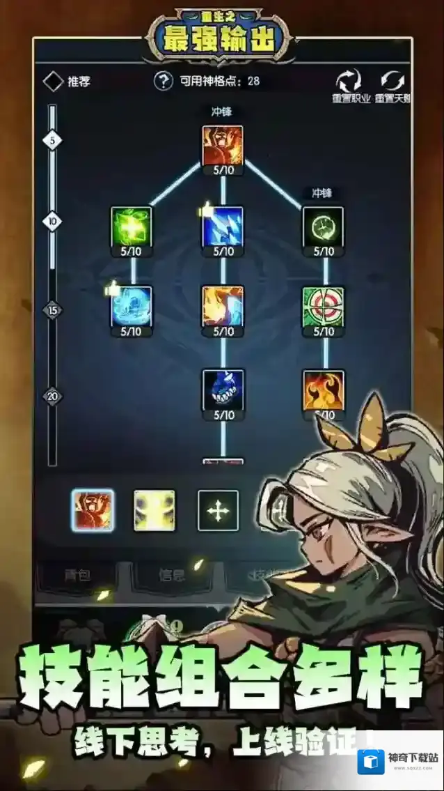 重生之最强输出最新版拥有丰富多样的角色和技能树,每个角色都有独特的背景故事和技能组合,玩家可以根据自己的喜好和策略进行自由搭配,创造出属于自己的最强输出阵容,将不同技能的伙伴们都放置在不同的位置上。