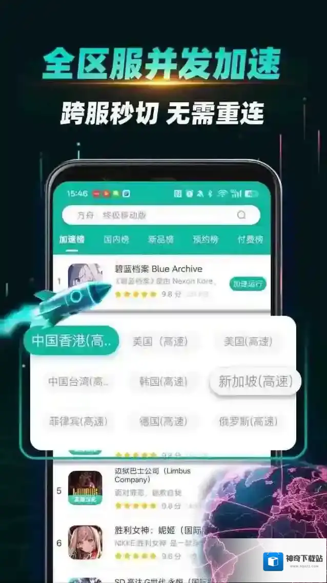 3、搭载多线并发加速引擎,支持一键切换多个区服