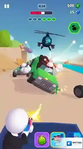 2、接着我们点击下方屏幕就可以射击了,击溃一辆汽车后,准心就会自动的移到下一量。