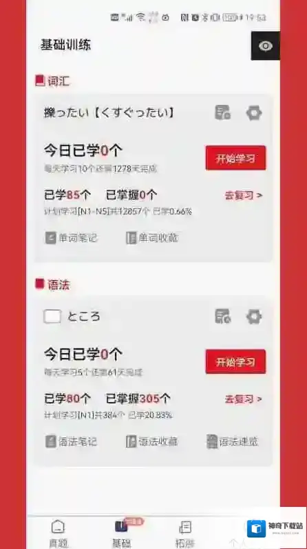 2、软件里面的日语考试题型有着清晰的分类,方便用户选择练习。