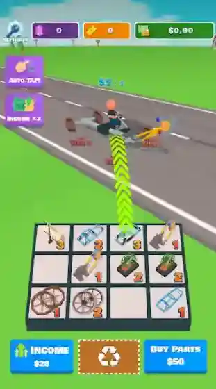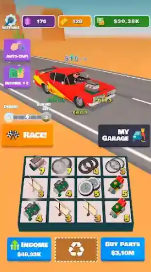 合并赛车(Idle Racer),一款融合了趣味合成元素的赛车竞速类手游。在这里,玩家可以通过合成汽车的各个部件来组装汽车,包括有引擎、车身和轮胎,随着部件的不断升级,不仅车辆的性能会一步步攀升,就连外观也能越来越炫酷!除此之外,我们组装好赛车之后,就能够去匹配其他赛车进行比赛,在丰富多样的赛道上展开刺激无比的竞速比赛,享受极致速度带来的快感!