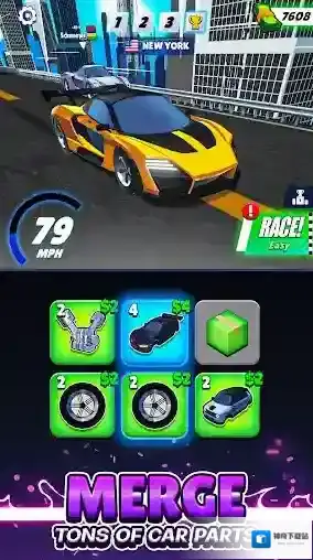 1、合成车身、轮毂和发动机,一步步的升级汽车的零件,将其逐步的打造成为终极跑车,带着你在赛道上疾驰。