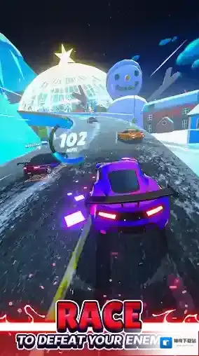 4、改装一定等级后就会解锁比赛,比赛中按住屏幕即可加速前进,左右滑动屏幕即可移动。
