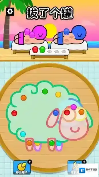 拔了个罐,由羊了个羊同家公司所制作的休闲小游戏,玩法是经典有趣的拔罐玩法,并且还加入了特色的换装玩法,带给你更加休闲有趣的游戏体验!游戏中,我们要从图案中去匹配相同颜色的火罐给客人,为客人祛除身上的湿气,招待完所有客人就能顺利过关活获得奖励。通过不断的闯关来收集更多好看的服装,自由的去搭配自己的角色,并且用最满意的穿搭去参加时装比赛!