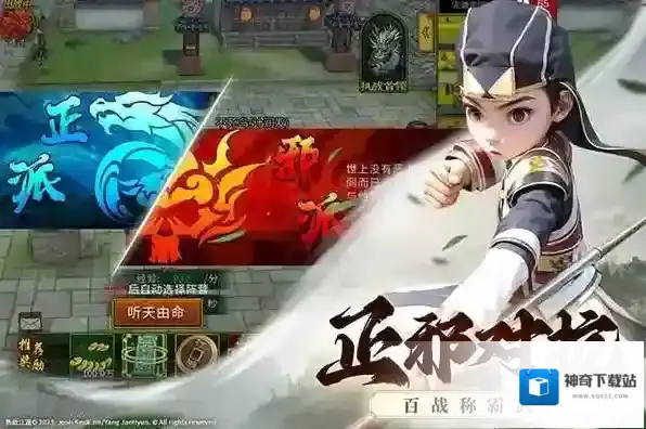 游戏设有正邪两个势力,玩家可选择所属势力,通过不断挑战和提升实力,争夺武林霸主地位。