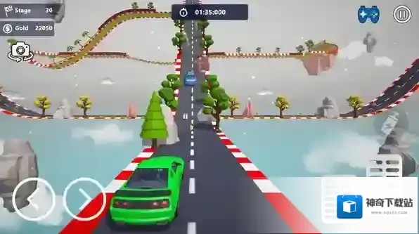 3、在游戏中,你需要操控车辆在赛道上行驶,注意前方【金币】等奖励,顺利通过关卡。