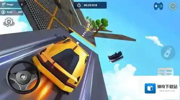 3、赛道设计大胆:包含海量创意关卡,如70度斜坡、环形空中赛道、连续跳台等,每个关卡设置独特障碍与地形,需根据赛道特性调整驾驶策略,感受心跳加速的挑战。